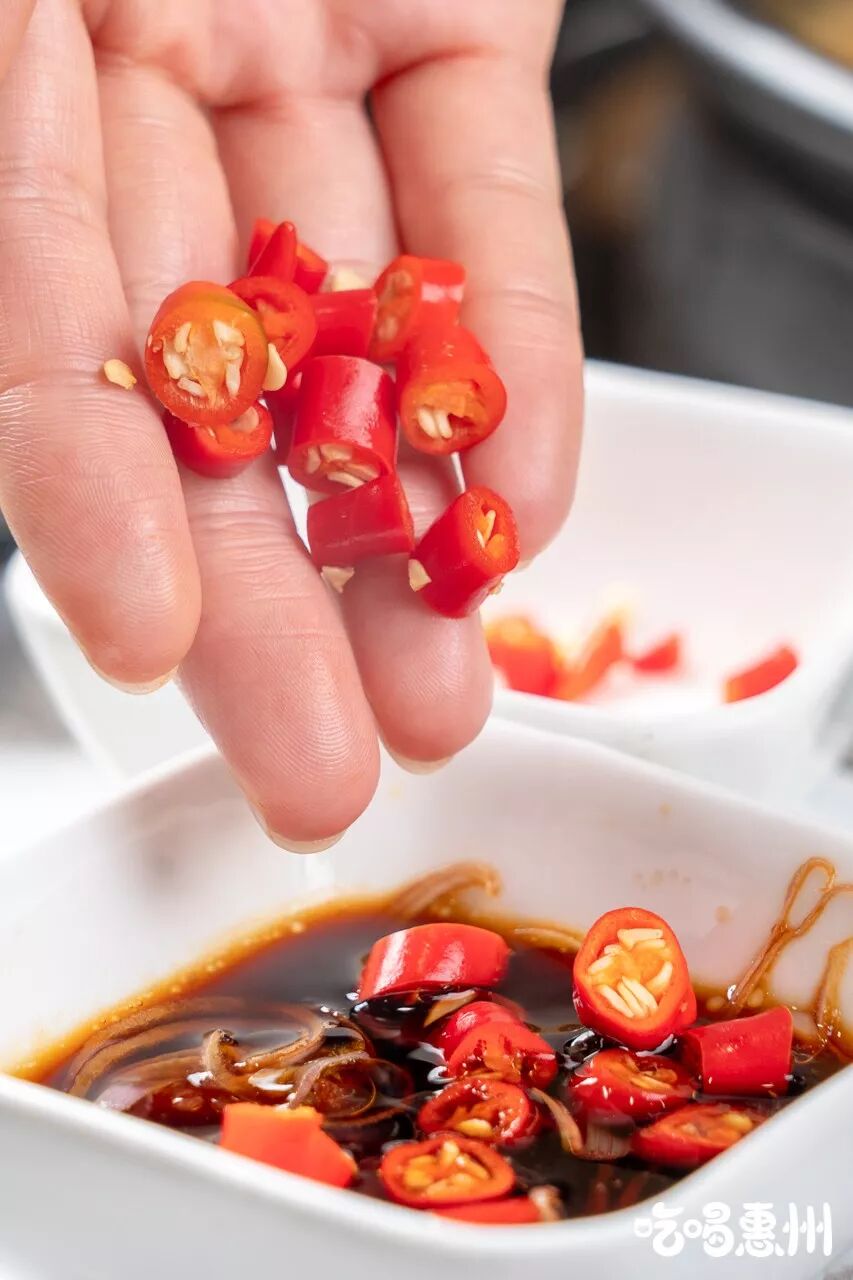 加上标配的「红葱头+秘制酱汁+芝麻油」蘸料,喜辣的小伙伴还可以加上辣椒,味道体验感upupup!