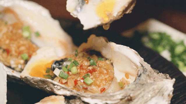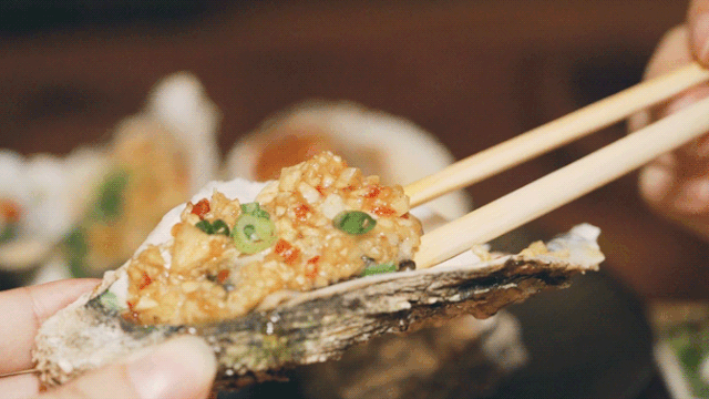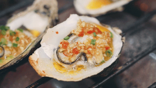 每一只生蚝都经过精挑细选和认真洗刷,烤好的生蚝肉质又白又嫩。