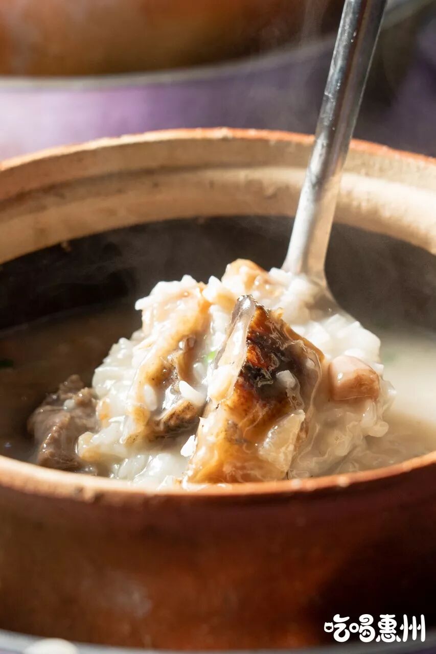 经过25分钟的搅拌,将满腔的客家口味浓缩进奶白的粥底中。