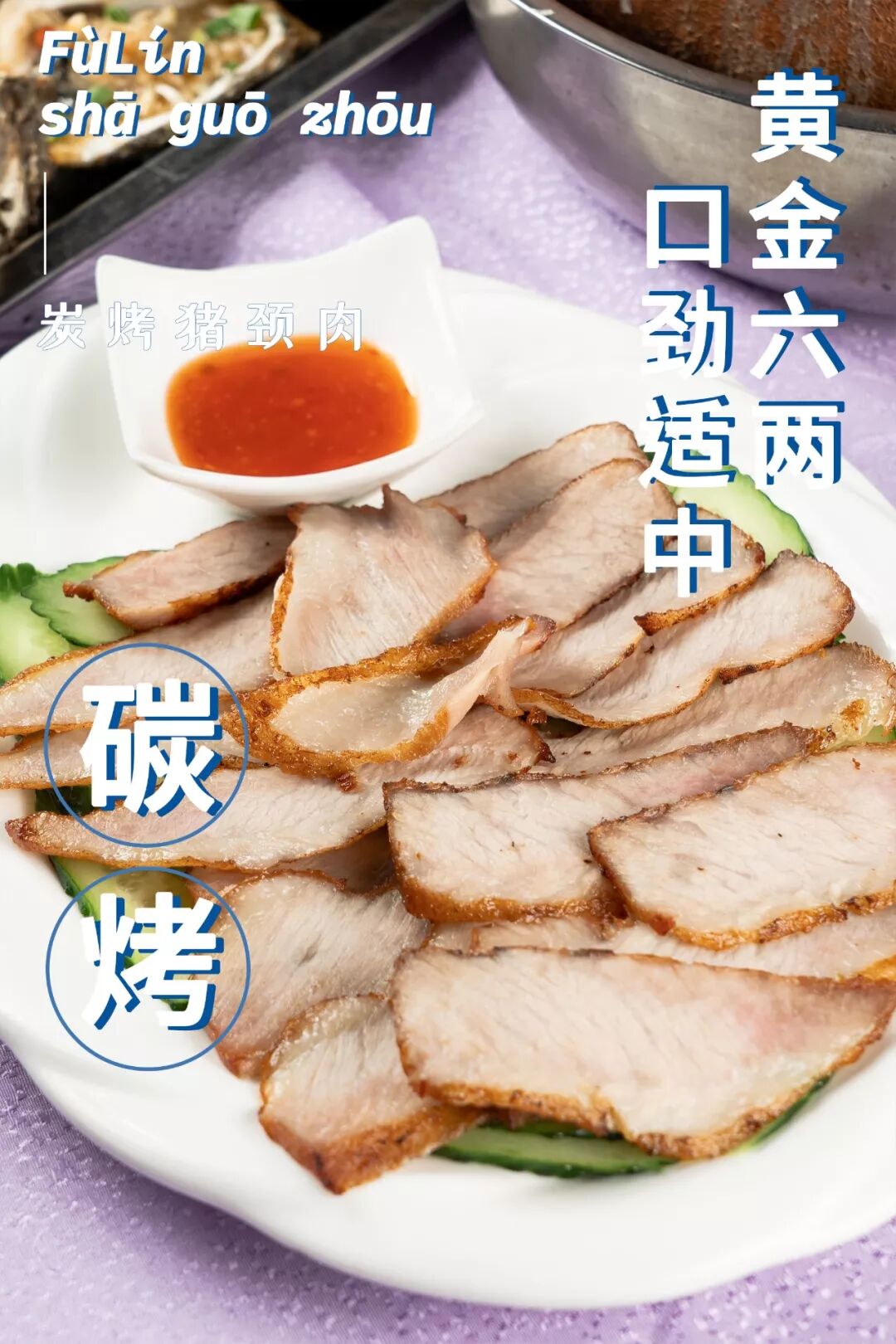 粉嫩的猪颈肉在经历一场“火焰的手术”后,表面镀上了一层金黄的色泽,发出诱人的讯号,似乎在提醒着我们:趁热吃吧!