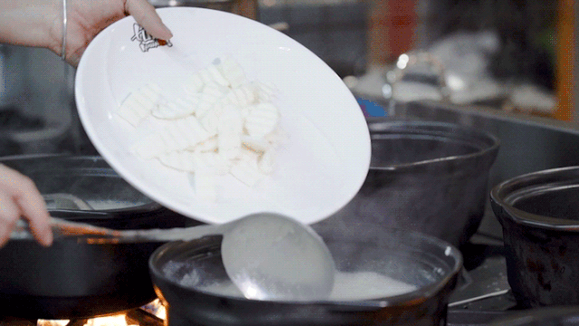 搅拌粥底不仅仅是一个体力活,还需要师傅根据粥现熬的程度,判断什么时候放食材,调整火候,搅拌粥底,让每一锅粥都熬煮得恰到好处。
