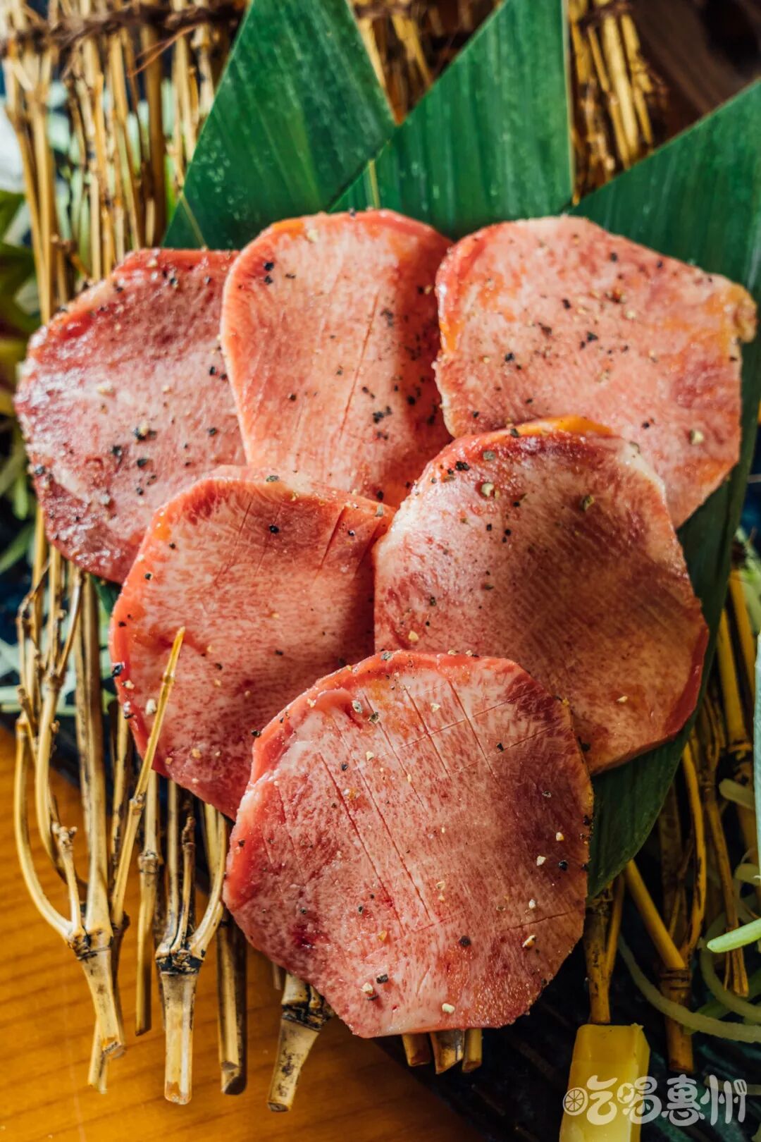 开烤前要先放牛油,端上来的肉都是提前裹好了黑胡椒的,牛舌两面小刀细切,烤起来受热均匀。