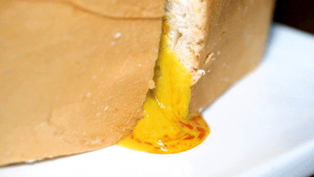 切包一定要趁早,可以看到咖喱汁汹涌而出,面包皮香甜松软,蘸着浓郁的咖喱吃很有风味。