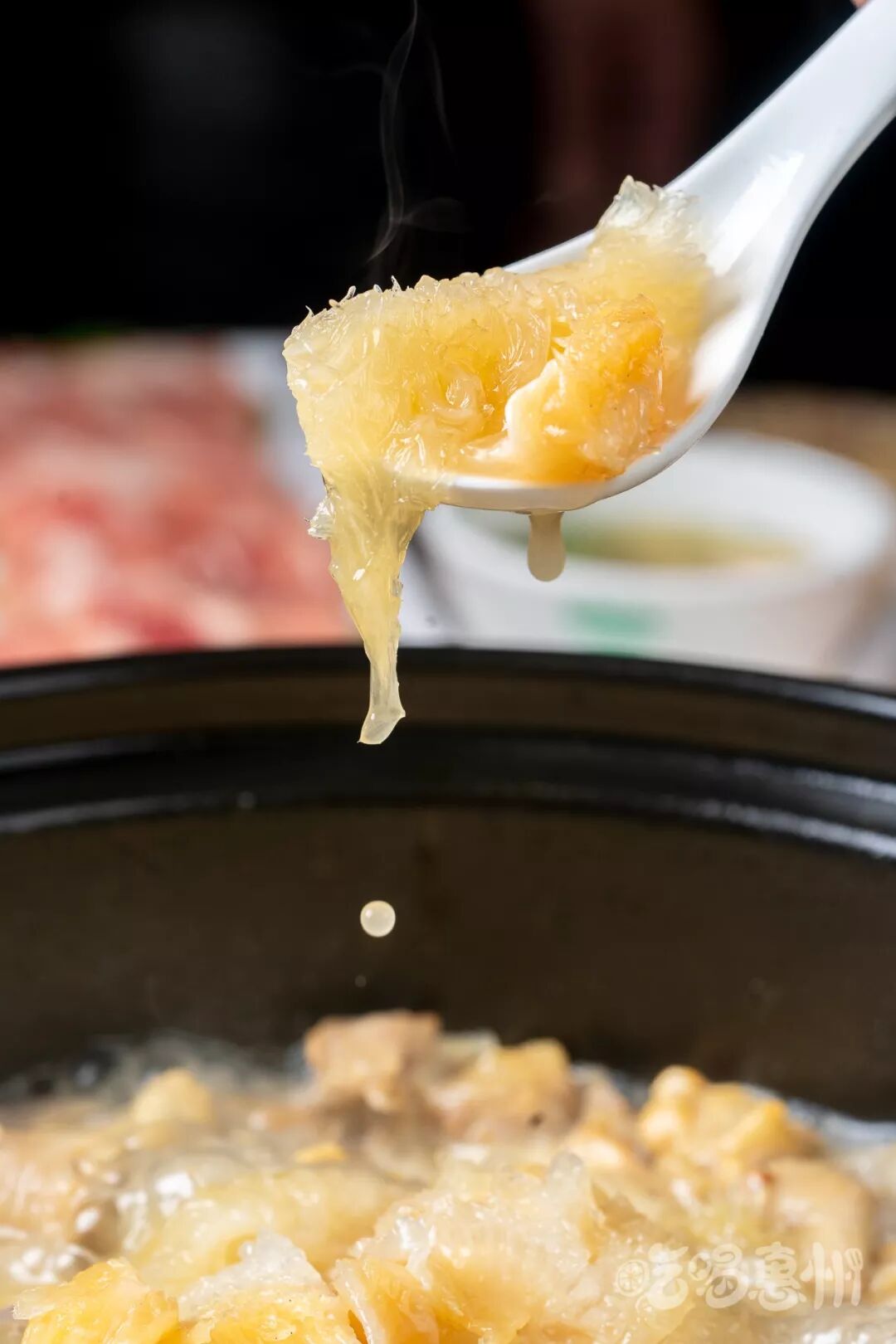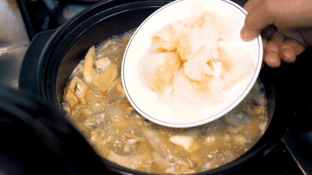 花胶鲜美,一煲分量十足,烹煮后的花胶很有弹性,美容又养颜。
