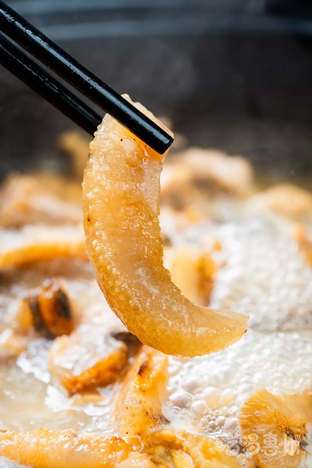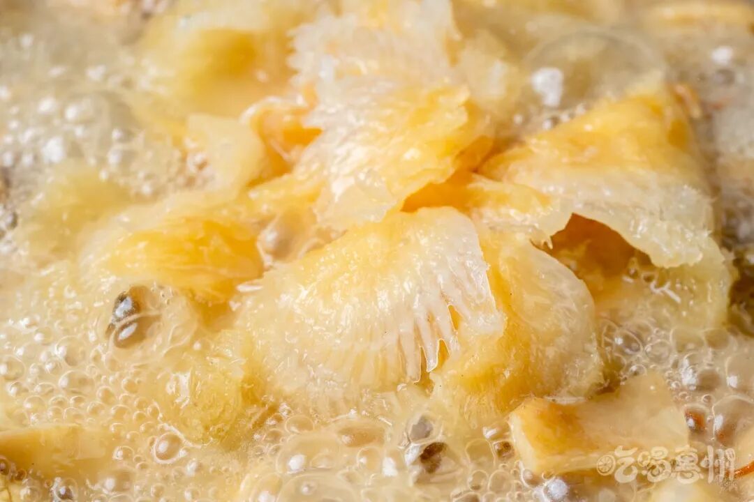 看鱼翅在煲里咕咚咕咚翻滚,香味挡不住地飘散出来,拍着拍着,就忍不住咽了下口水。