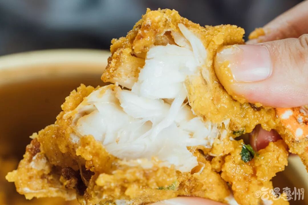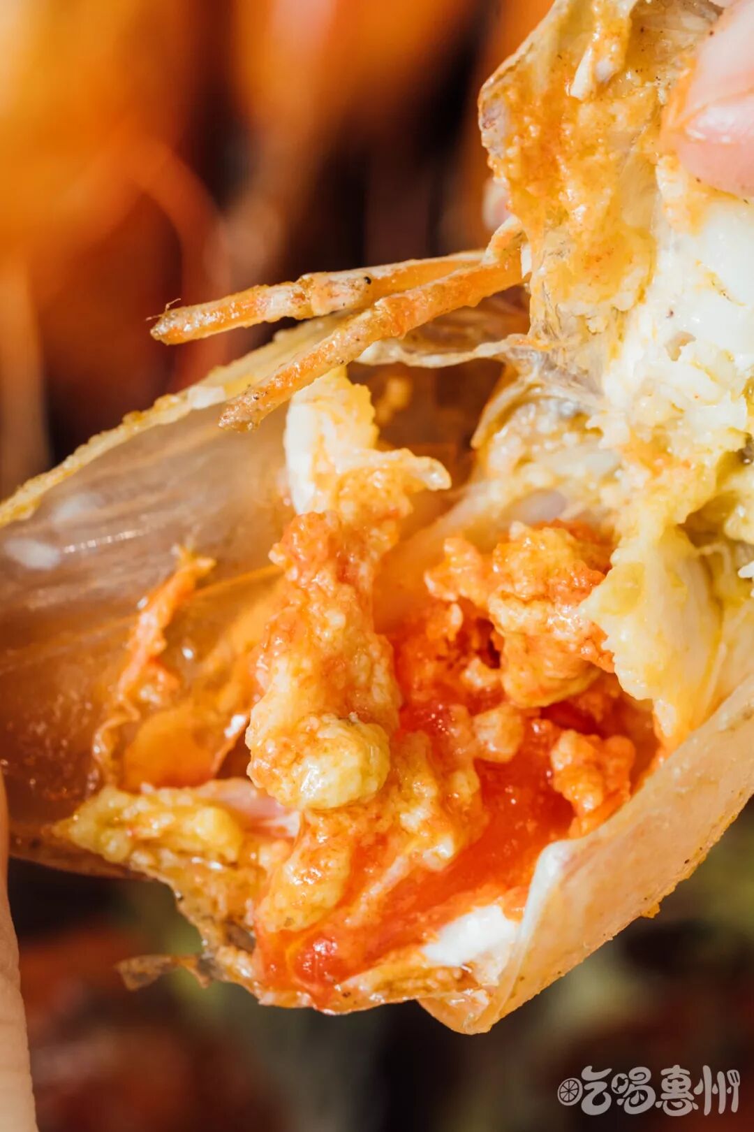 一掀开蟹壳,在场人士都心动了,配上避风塘做法爆炒,味全都进了蟹肉和蟹膏里,酥、香、脆…欲罢不能!