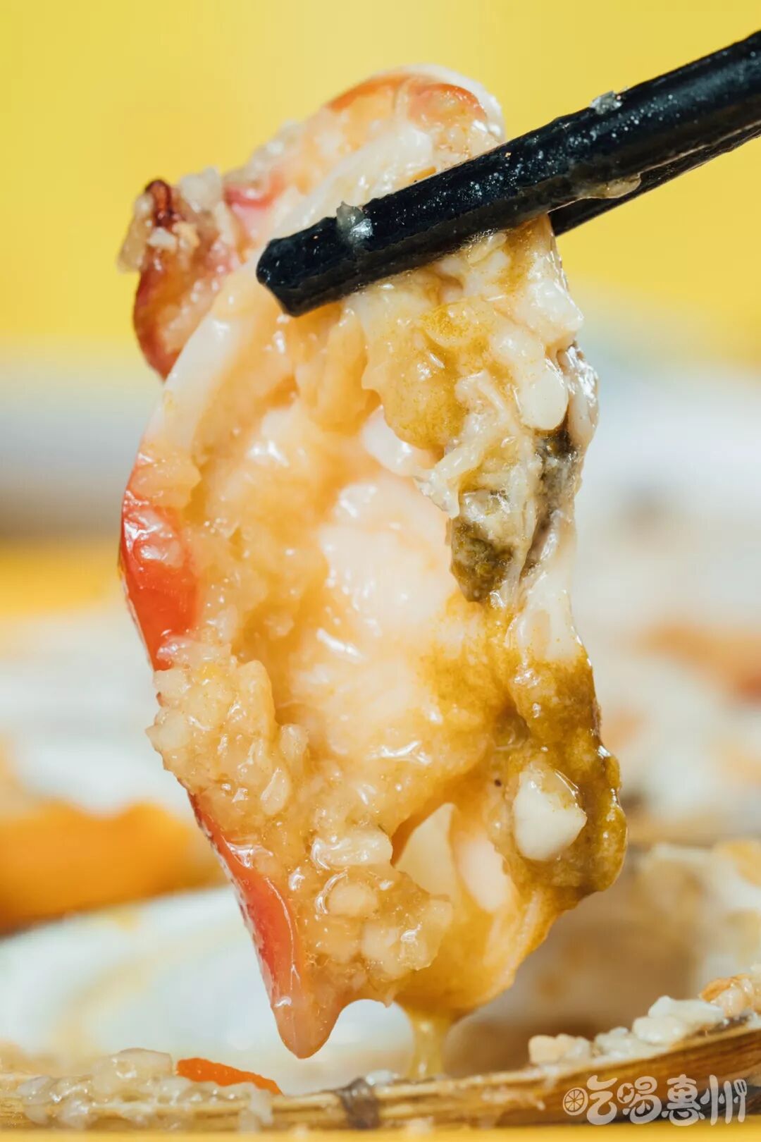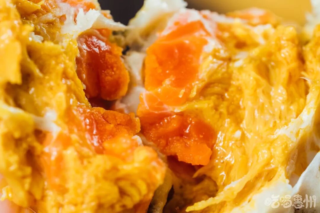轻轻掰开蟹脚,雪花般白嫩的蟹肉瞬间披露出来,我都不记得多久没吃过这么多肉的蟹了,配上外边咸蛋黄一起吃,幸福到想哭。