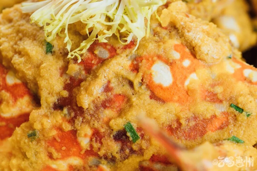 小金锅里装着金灿灿的蟹,玲珑小巧的颜值就很打动我。最致命的是蟹壳上那厚厚的一层咸蛋黄,吃前,我是一定要先把这壳吮干净…