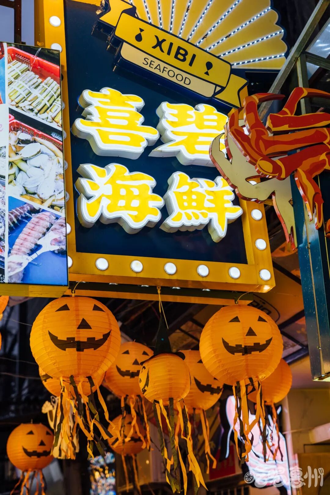 你熟悉的喜碧街变啦!装了很多新的灯箱,还挂了很多挂饰。现在是妥妥的万圣节主题街,超SUP!