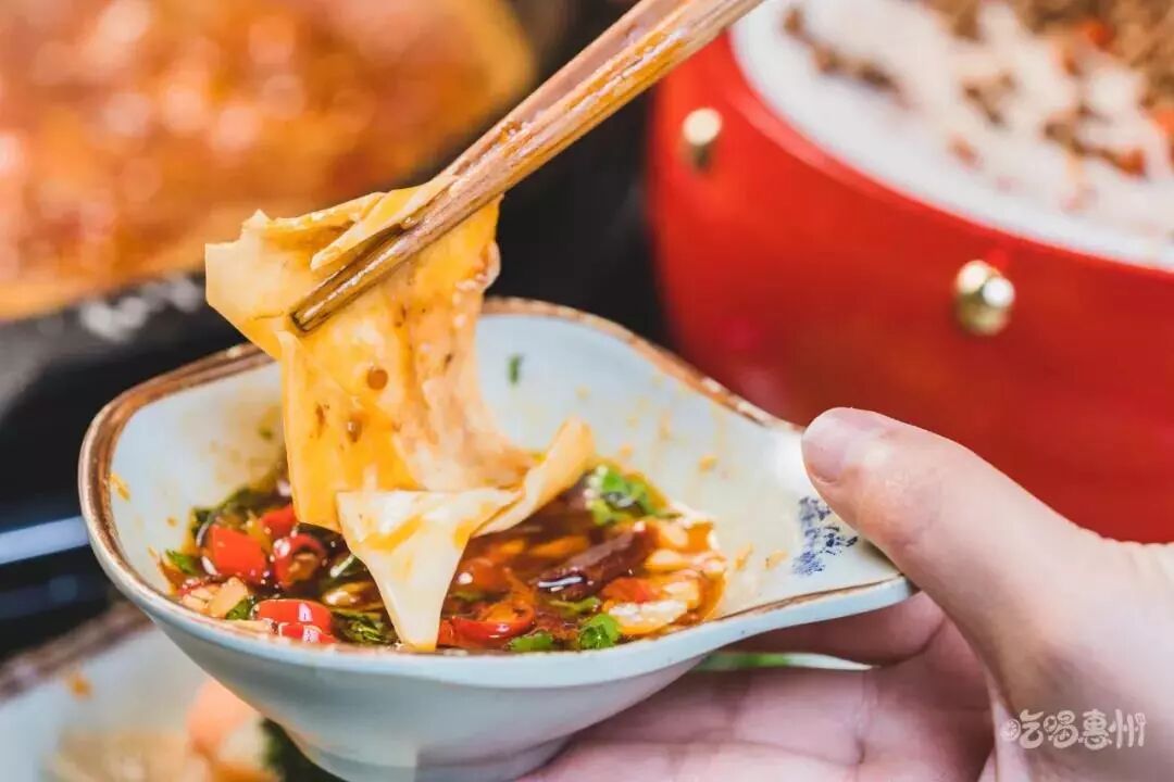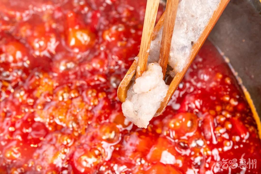 沾上调配好的酱料,为黄喉增添味觉上的新元素,吃起来回味无穷。