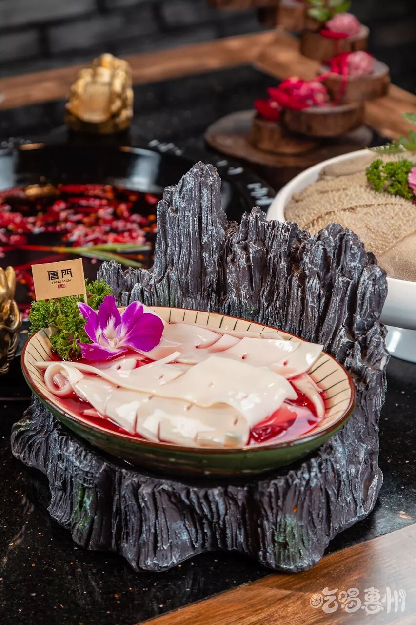 白白净净的黄喉,配以花刀的纹路,并不是为了花里胡哨,而是能增加涮煮的面积,使我们能更快地吃上这口爽脆。