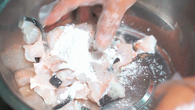 烹饪前当然要做足准备工作咯,切成鱼片,将鱼片腌制,放入独家的秘制配方,让每一片鱼肉都成为独家的味道。