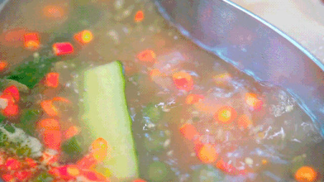 一般吃四川火锅汤底都是不能喝的,但是这里的就有所不同了,开吃前要喝一碗原汁原味的高汤。精心熬制的高汤加上番茄、青瓜、莴笋,酸甜清新,再配上三椒的提味,酸香麻辣,特别开胃还富含大量的钙。