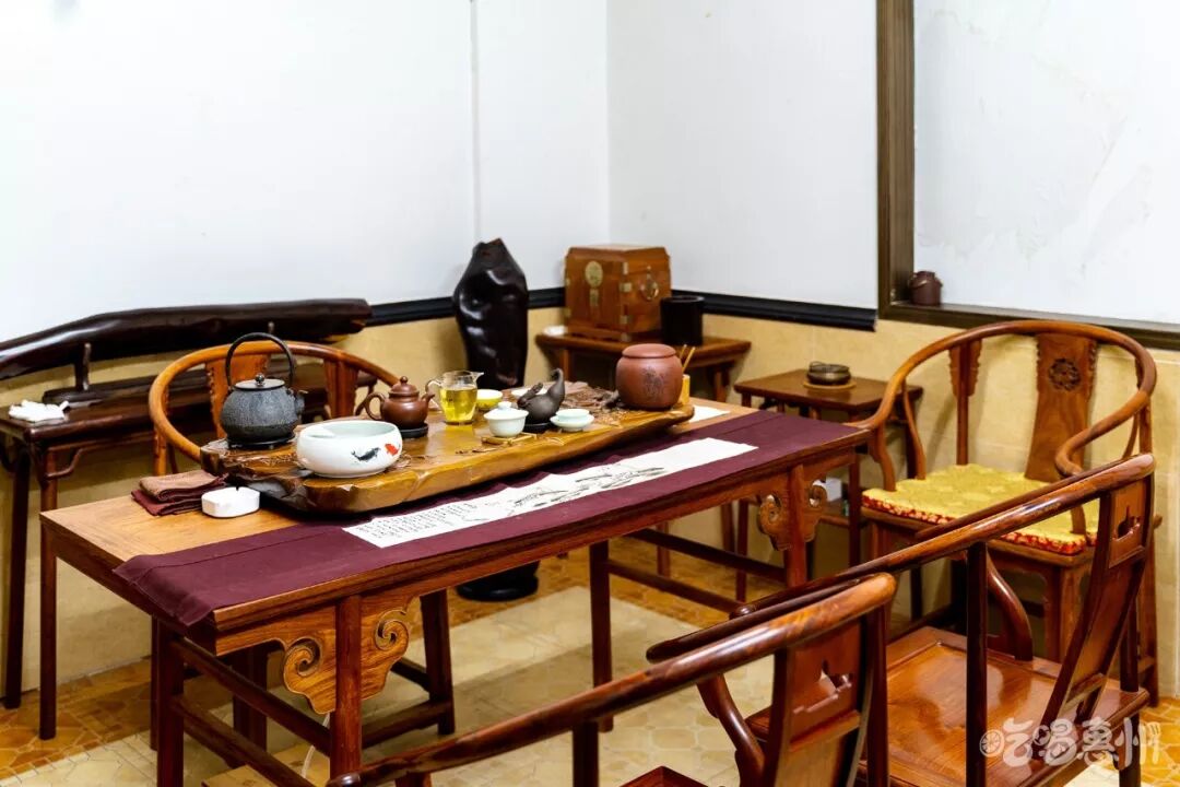 二楼还有一个茶室,提供给客人在茶余饭后品一壶靓茶。全都是明史红木家具收藏品,霸气令人的感觉。老板是明史红木家具爱好者,喜欢以木会友,志同道合着可以来喝喝茶聊聊红木家具哦。