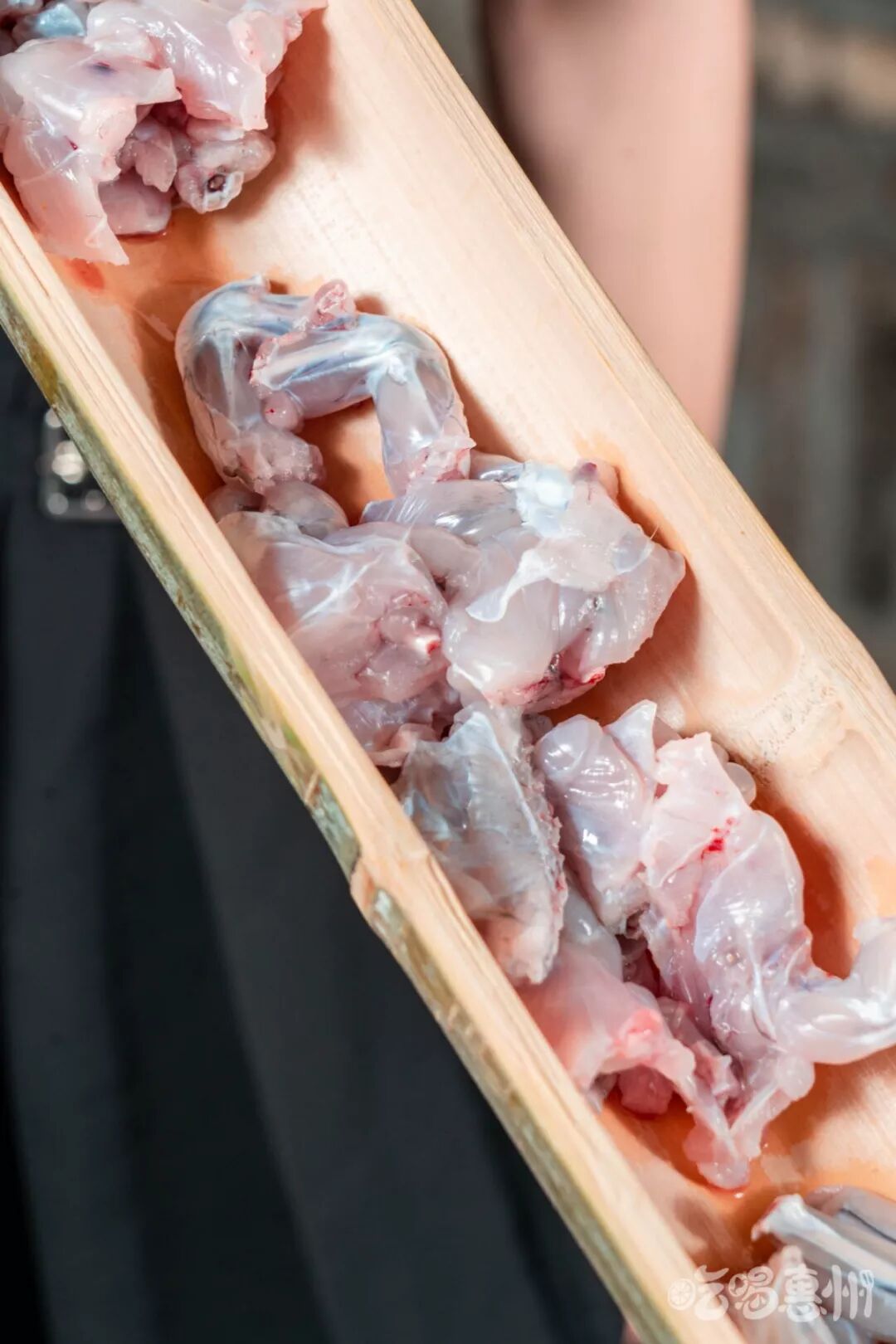 把鲜活嫩白的牛蛙倒入锅里咕噜噜的沸腾,牛蛙吃起来口感紧致,鲜甜嫩滑,美味至极。