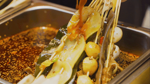 这里的冷锅串串款式很多,闭着眼睛都能选到自己喜欢的串。