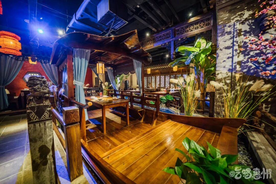 店里是青黛砖瓦的仿古四合院落造型,清幽雅致,还有这艘栩栩如生的木船,吃个饭都是享受!