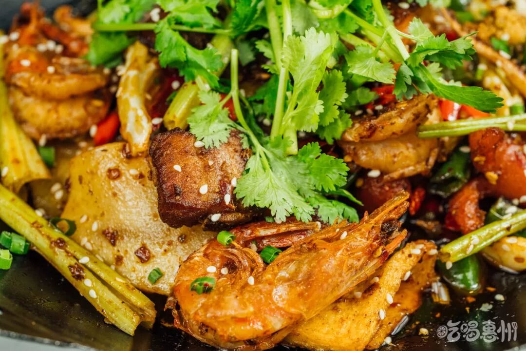一份麻辣香锅里,食材丰富,大虾、火腿、排骨、鱿鱼须、花菜、豆干…等,伴以多款佐料下锅一顿爆炒,味道简直欲罢不能。