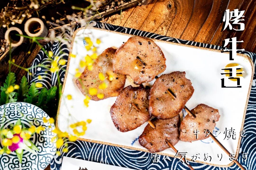 烤牛舌是居酒屋里的常胜将军,制作时,宽厚的面需要架在网架上烤,来回翻滚,保证受热均匀。