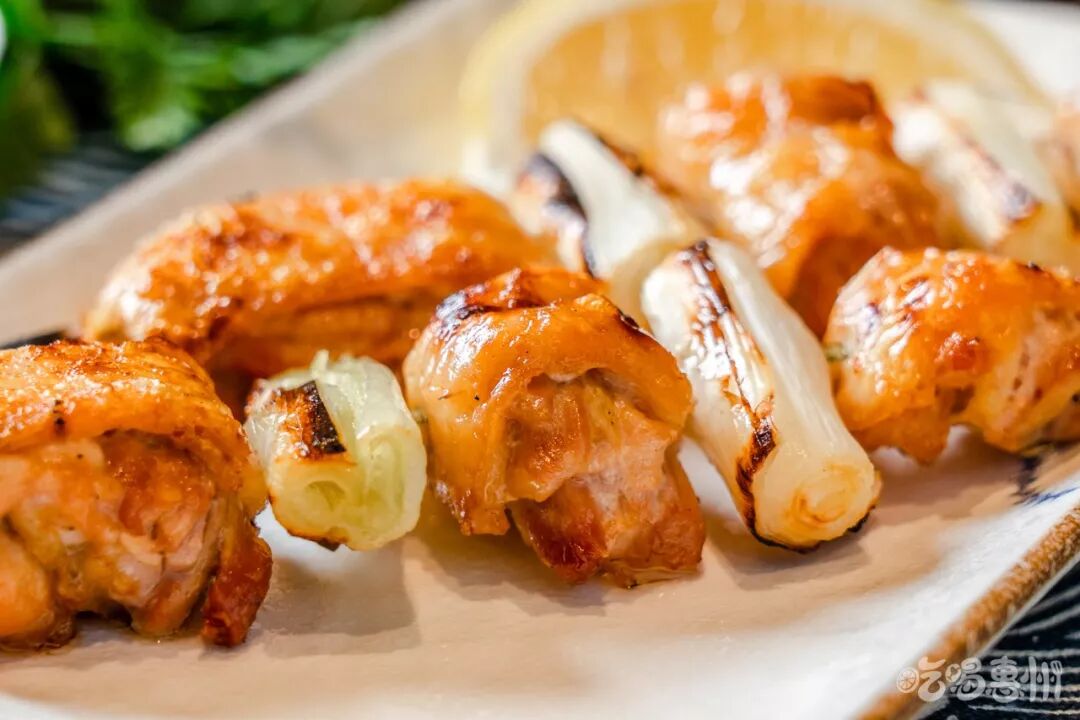 小屋主打的“烧鸟”中,我至爱这一份,盐烤鸡皮香脆,鸡腿肉鲜滑柔嫩,一点不柴。