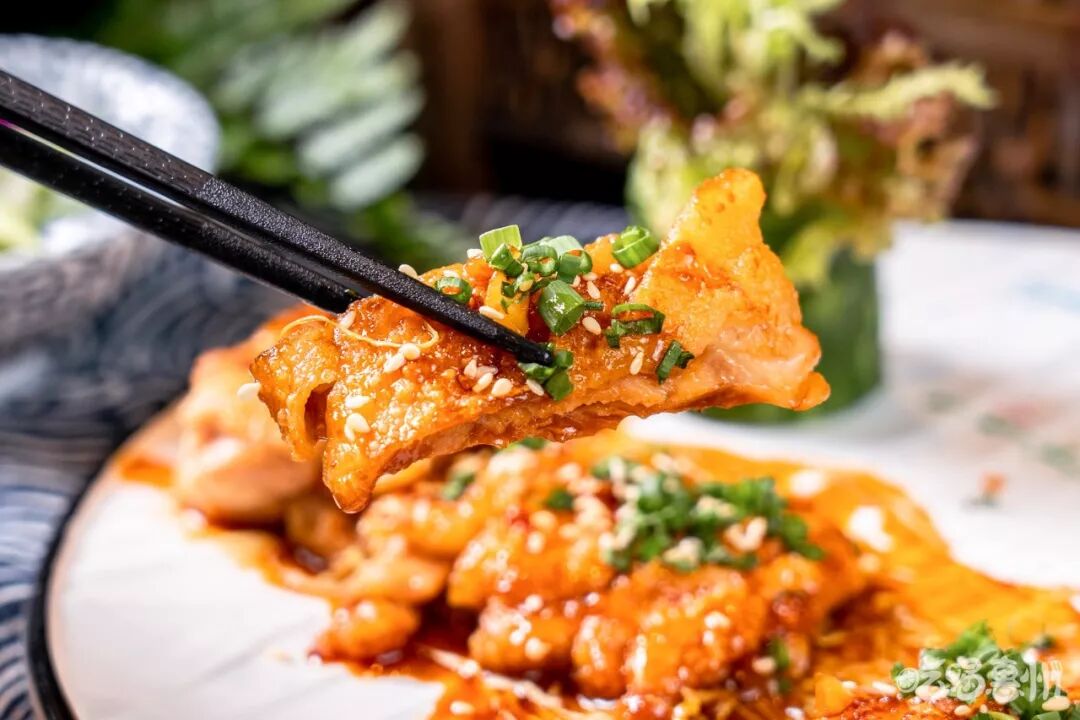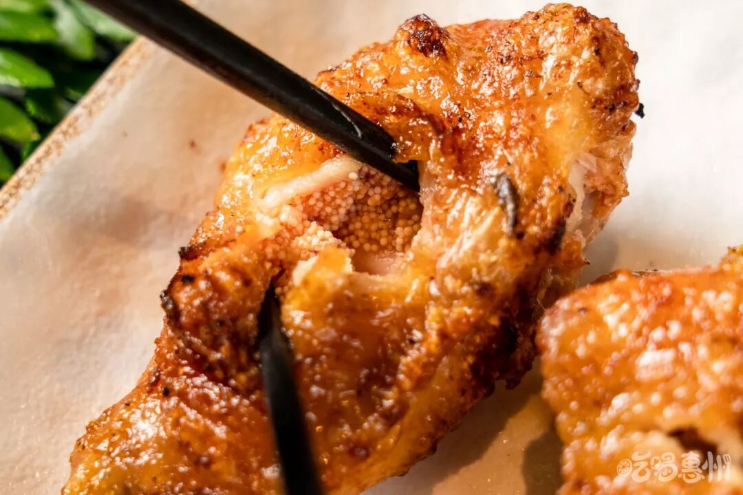 鸡皮非常脆,酱汁淋上后更是泛着金黄色泽,轻咬一口肉质非常鲜嫩。