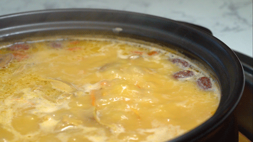 汤底被熬煮至牛奶白般浑厚才好,猪肚、鸡和花胶继续在这锅里面烹煮焖炖,最后剩这一碗热汤喝下去,瞬间元气满满!