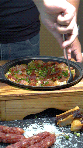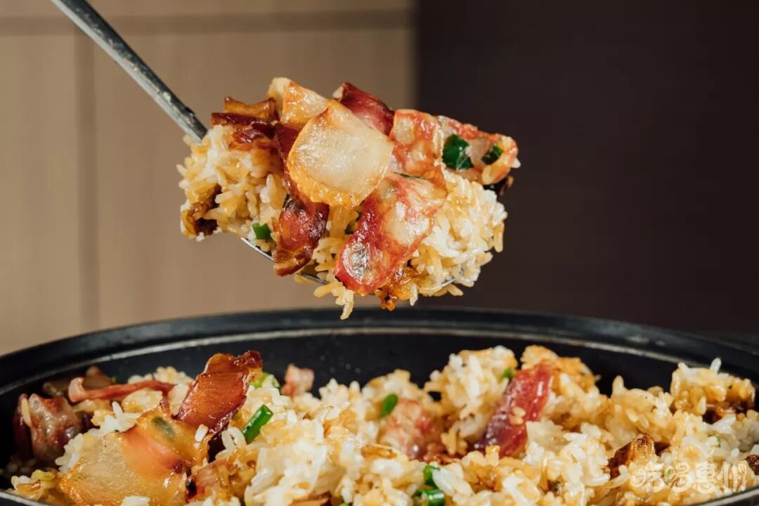 精选农家丝苗米,顺德广式腊肠以及味道一绝的独家腊肉,揭开锅盖,迅速拌开,底部那一层金黄香脆的锅巴,才是精髓的所在呢。