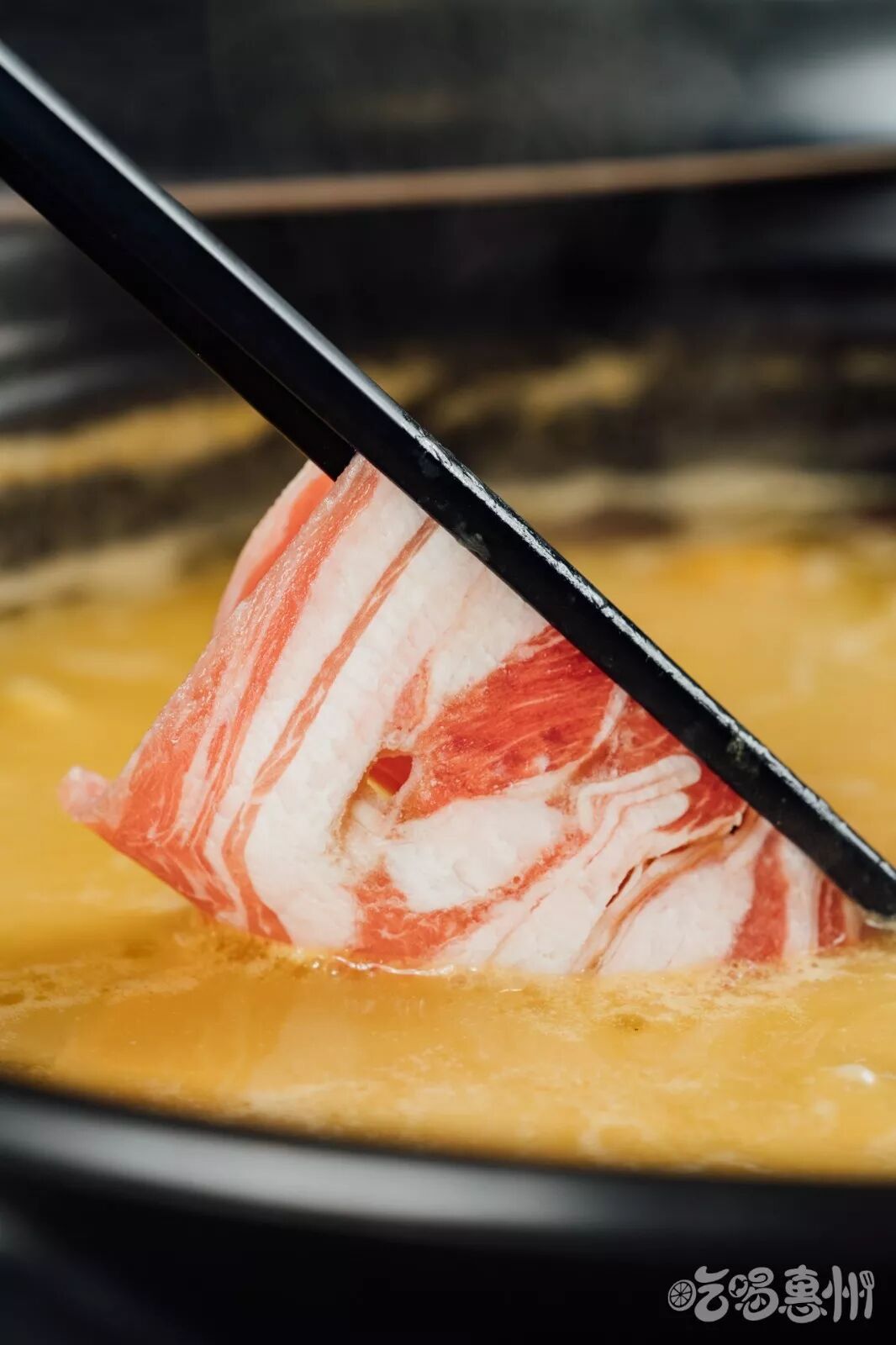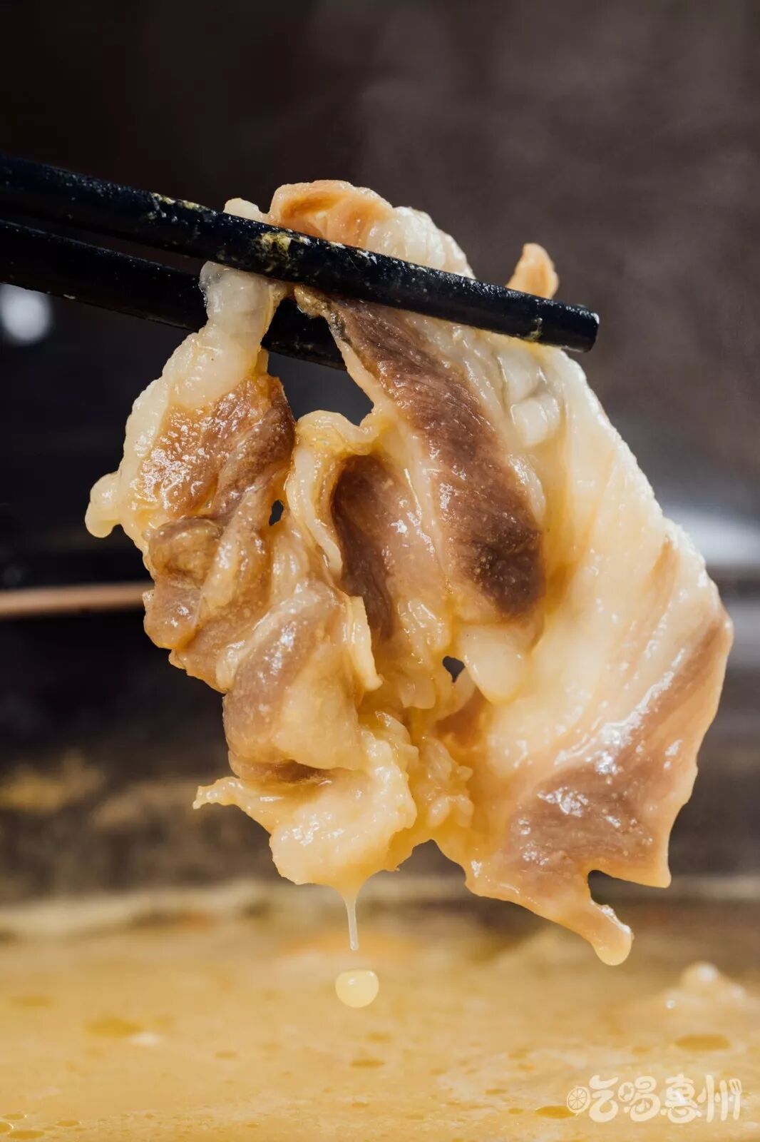 其实吃猪肚鸡煲涮配菜不需要额外再蘸酱料了,汤底足够浓郁使得肥牛吸收了所有汤汁味道,10秒起锅,又是满足的一口。