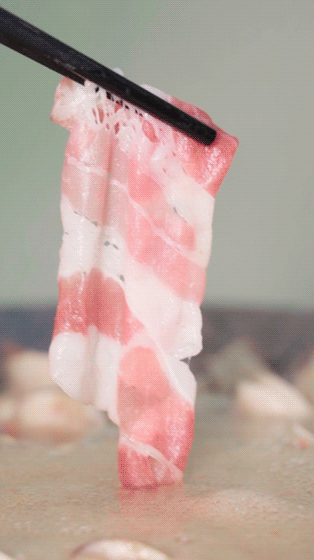 老板说牛胸口油越薄越好吃,下锅待卷起就能吃,一点儿也不腻,越嚼越香?