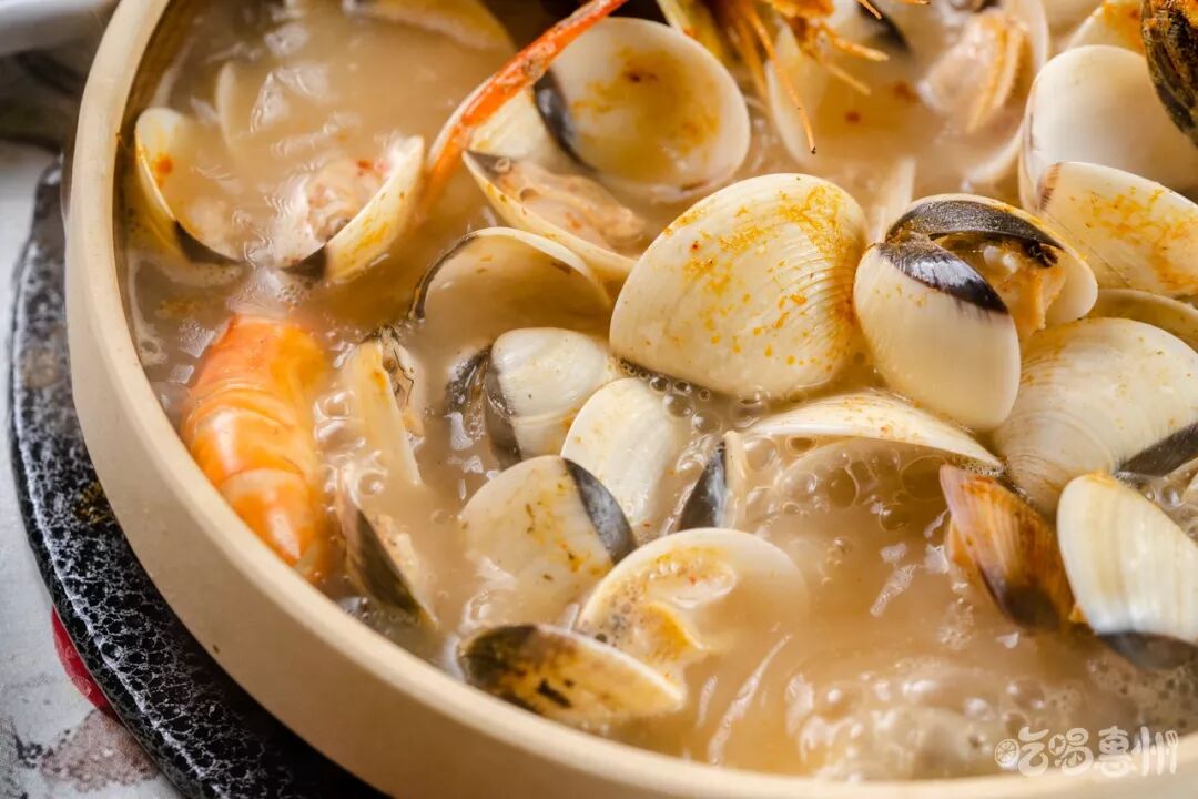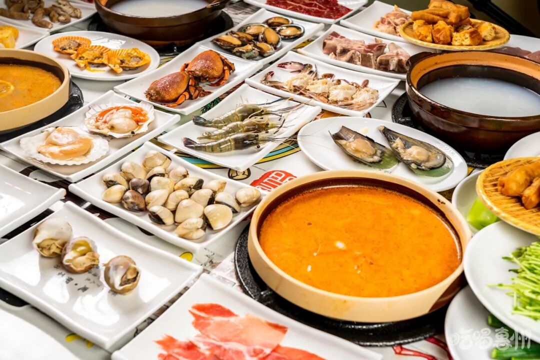 海鲜,是这份粥底火锅的“主打歌”。来这里的人,从来都不会错过它们。它家的海鲜确实让我惊艳到,种类够多且新鲜,简直是海鲜直卖场!保证食物的新鲜和口感,是惠·粥宴秉承的宗旨。