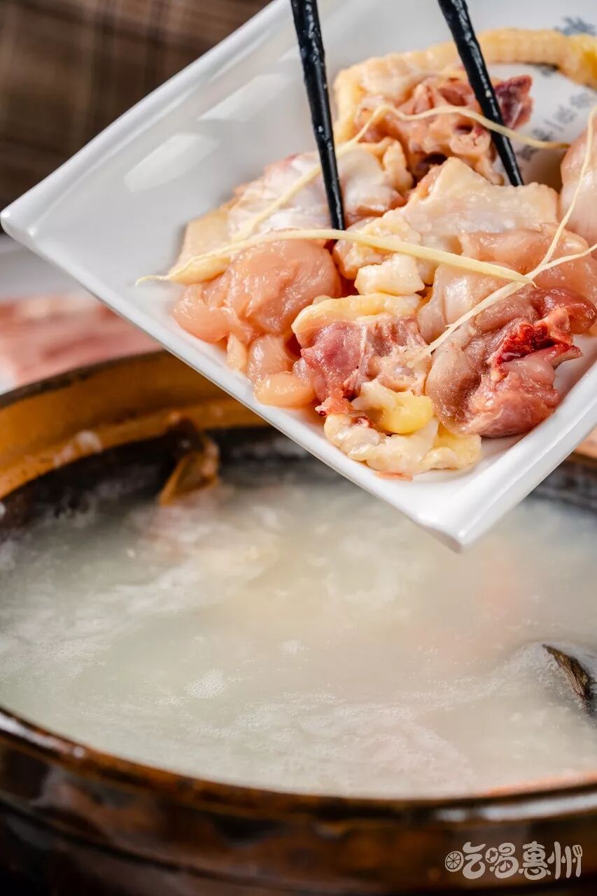 鸡肉下粥底滚上一滚