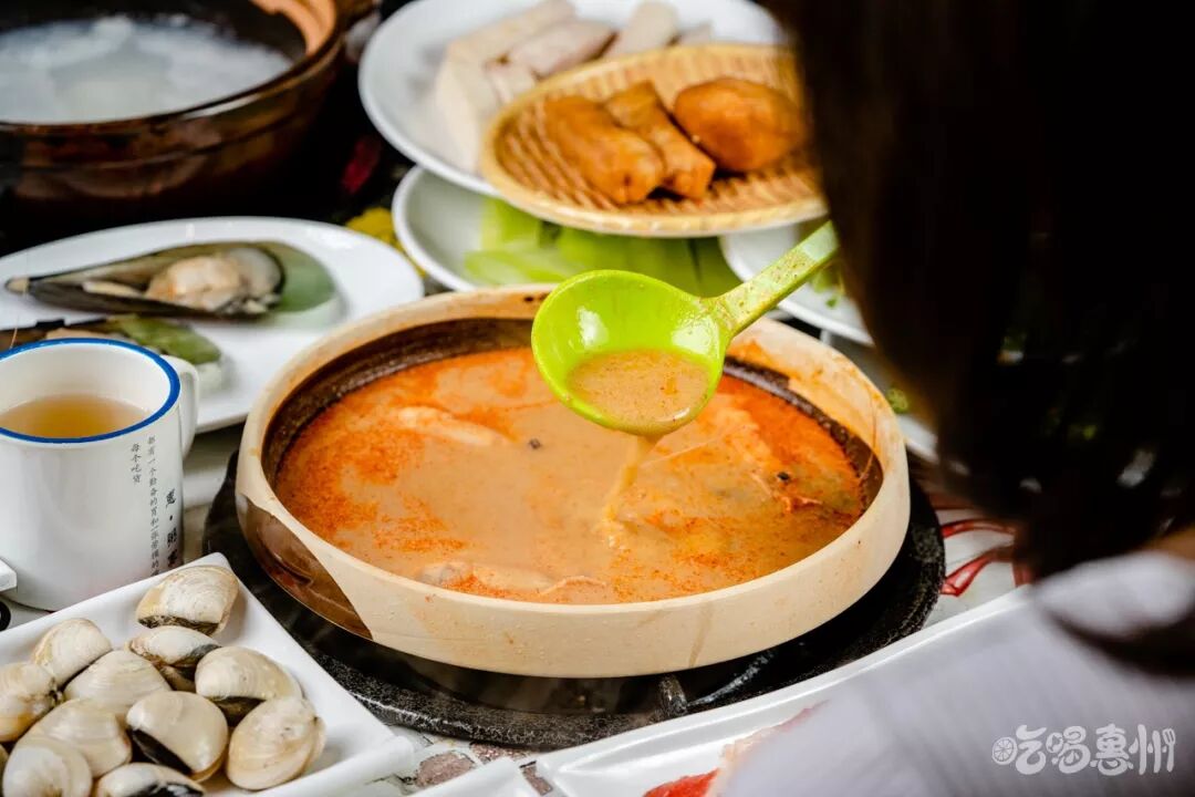 现在来惠·粥宴吃粥底火锅,也能吃到很火的惠州传统朱记美食了。老板每天都会在店里,现场制作让人垂涎三尺的阿嬷叫,还有其他油条、油饼…等烹饪美食。