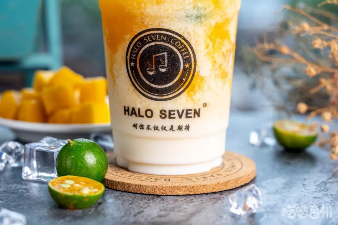 芒果果肉与茶底分明的雪融冷饮,醇香的鲜牛乳跳跃着味蕾,颇有几份调皮,增添着口感的层次,展现seven茶饮的特色!