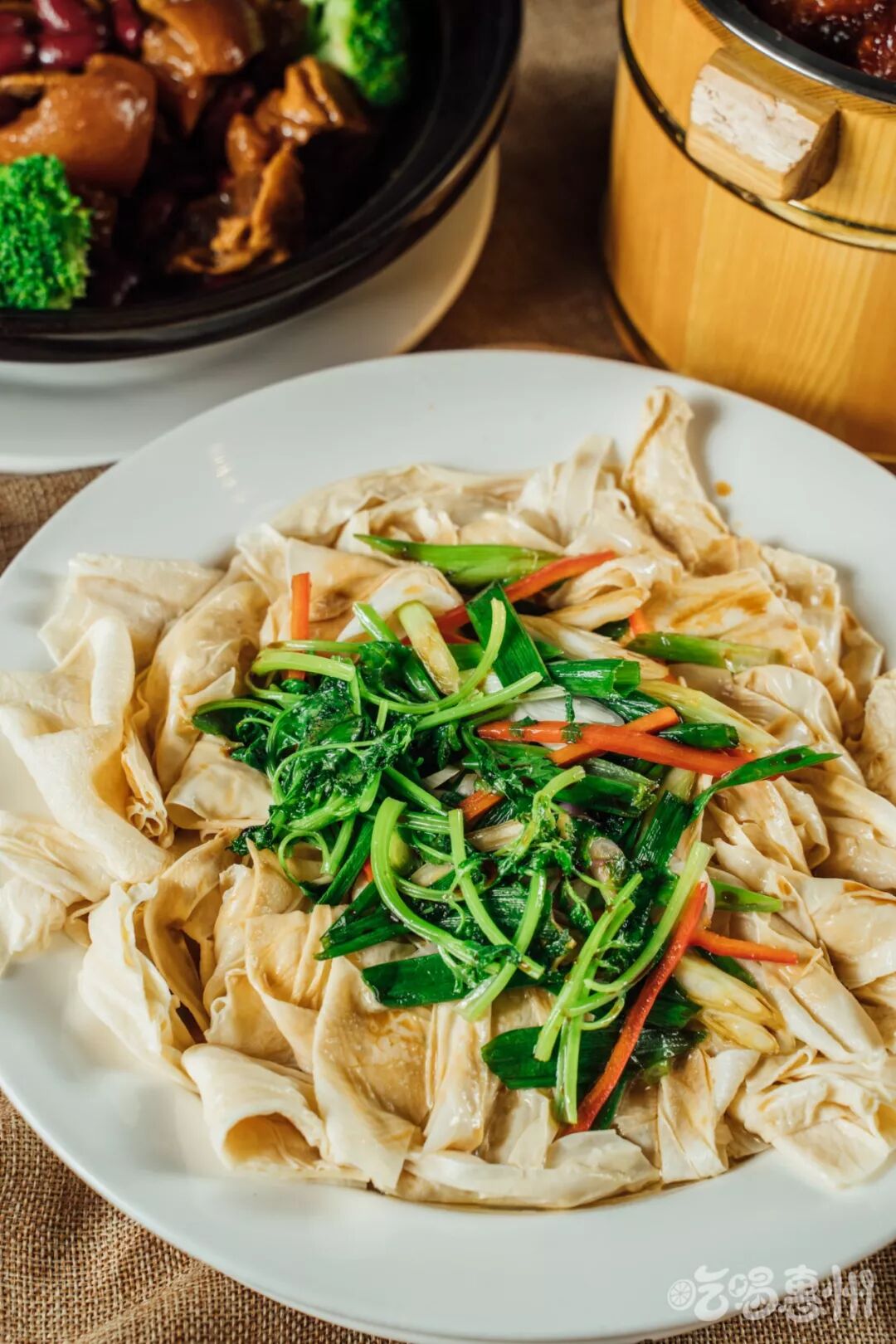 而粤菜的风采:用不多的调料、简单的做法,将食材本身的可能性挖掘到最大,正如这道惹油捞南昆山腐竹。吃过后再吃,即使闭上眼睛,也能尝出这是来自南昆山的腐竹。