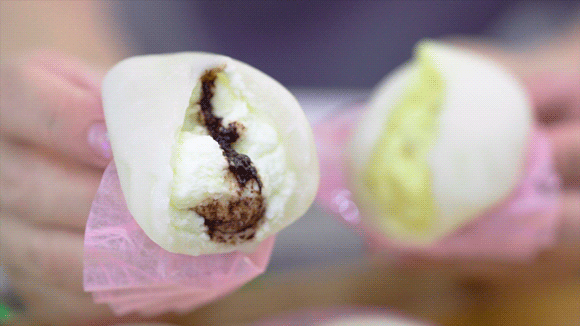 一口咬下,内陷全都爆出来了;巧克力控和芒果控的你有口福啦~