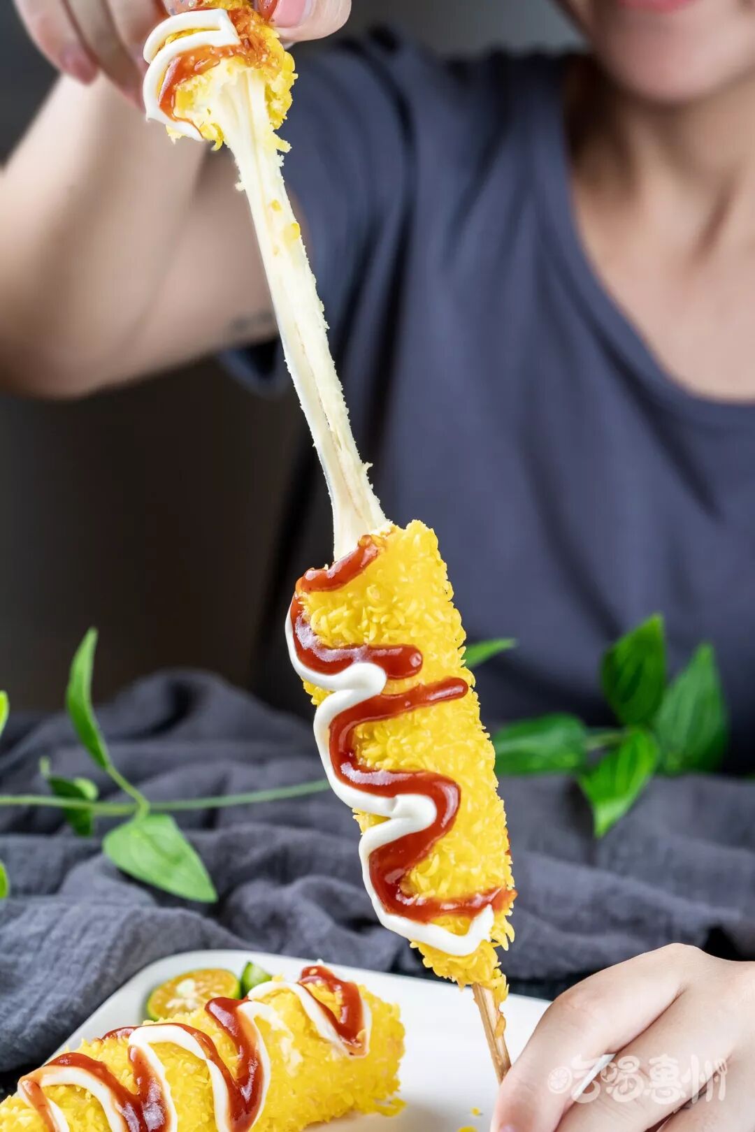 爆浆的拉丝芝士,表面一层卜卜脆的口感,再咬一口香肠,简直肉欲横流。