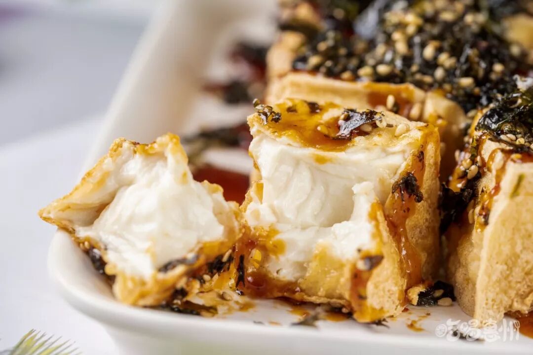外刚里嫩的豆腐君,实际他内心非常柔软;淋上童妈蜜汁酱汁,撒上海苔芝麻碎,特别诱人。