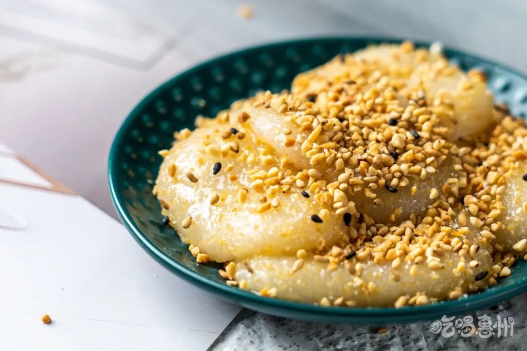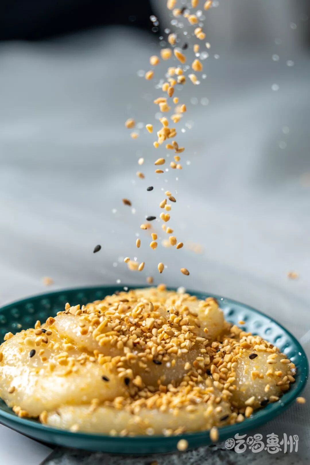 撒上花生碎和芝麻粒,入口软糯,一点儿也不粘牙。