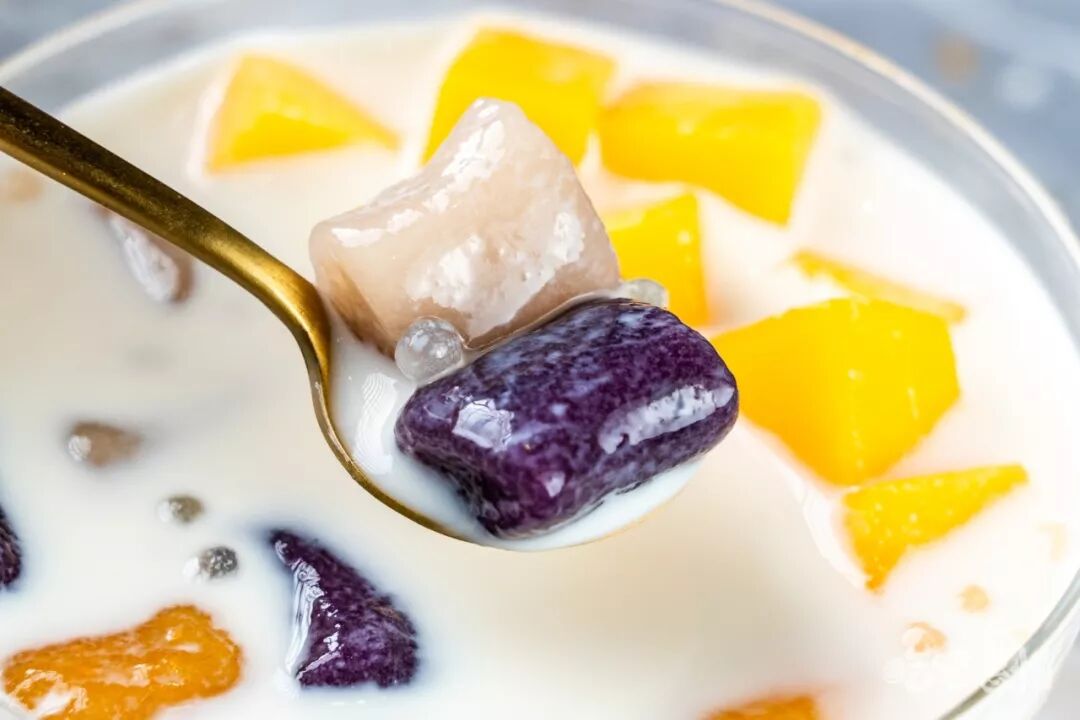 Q弹的芋圆,嚼起来还有淡淡的香芋、紫薯、地瓜的香味,真的是纯手工芋圆才会有的味道!