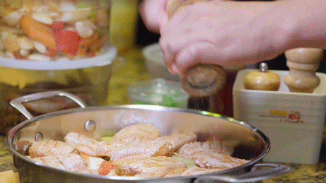 撒 ░ 放好了各种食材后,就可以将调料依次撒、浇在食材上盖上锅盖即可。在焖煮中,各种味道渗进食材里,丰厚浓郁。