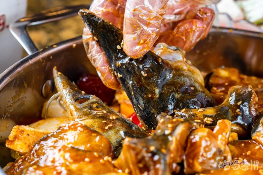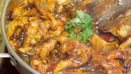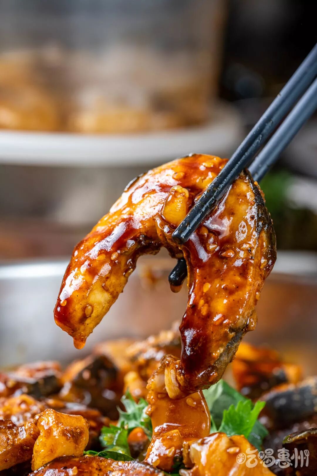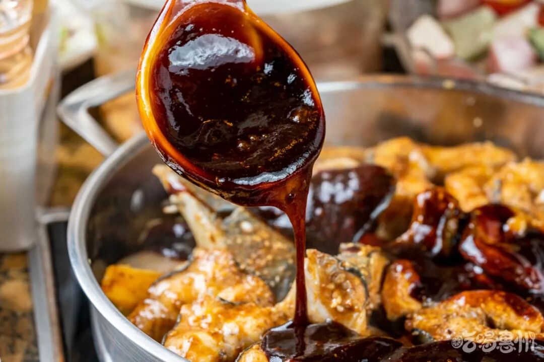 在秘制酱汁的功劳下,辟除掉了鱼肉多余的腥味,鱼肉吃起来的口感韧度恰好,由于在高火的焖煮下,汁水都渗进了鱼肉里,口感饱满。