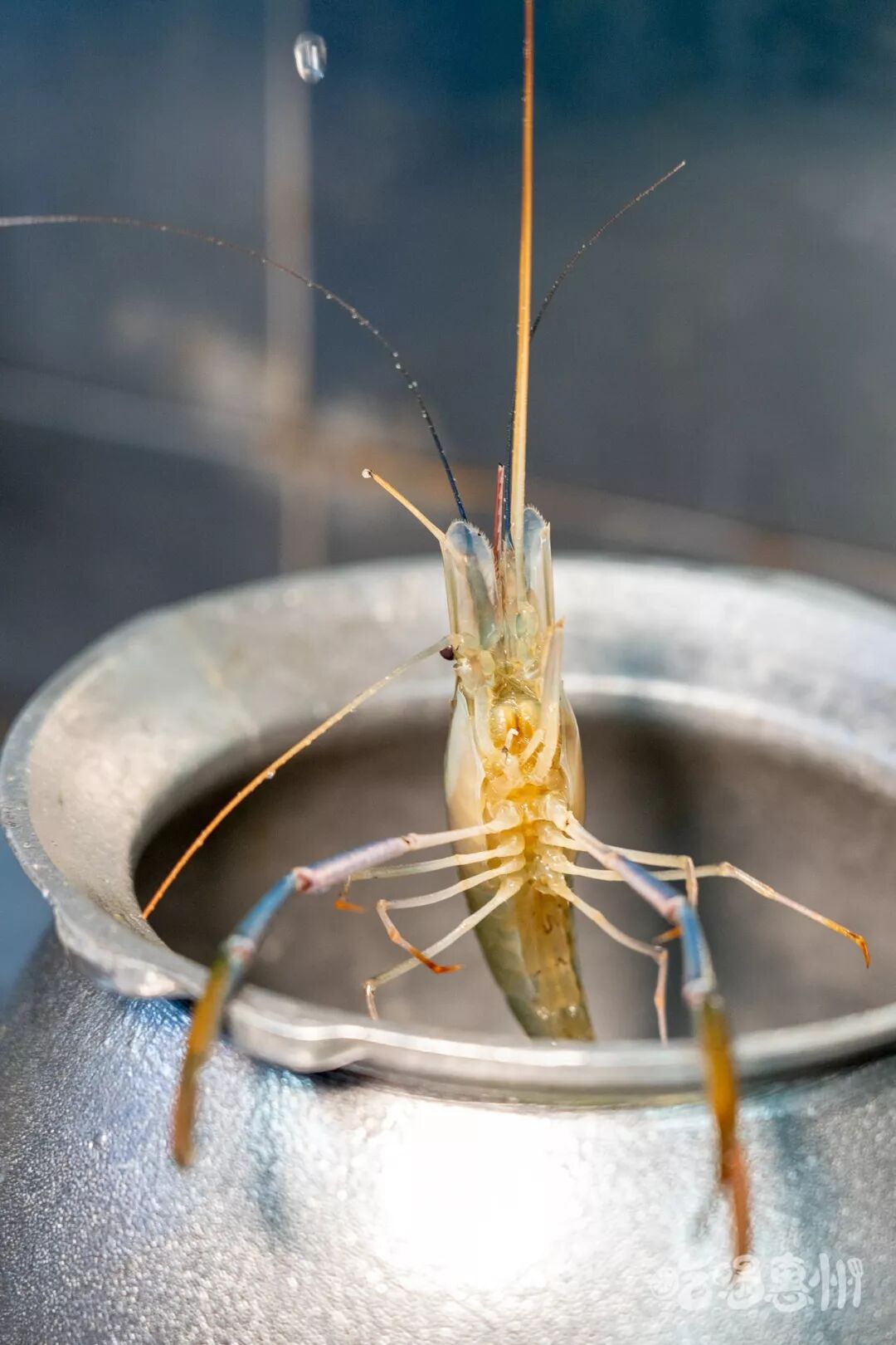 经过吹风机的洗礼,胡椒粉能均匀的依附在虾身,不用担心煮太久虾肉老了;师傅知道食客爱拍照记录下享受美食这一刻,所以会将虾倒挂在瓮口的边沿。