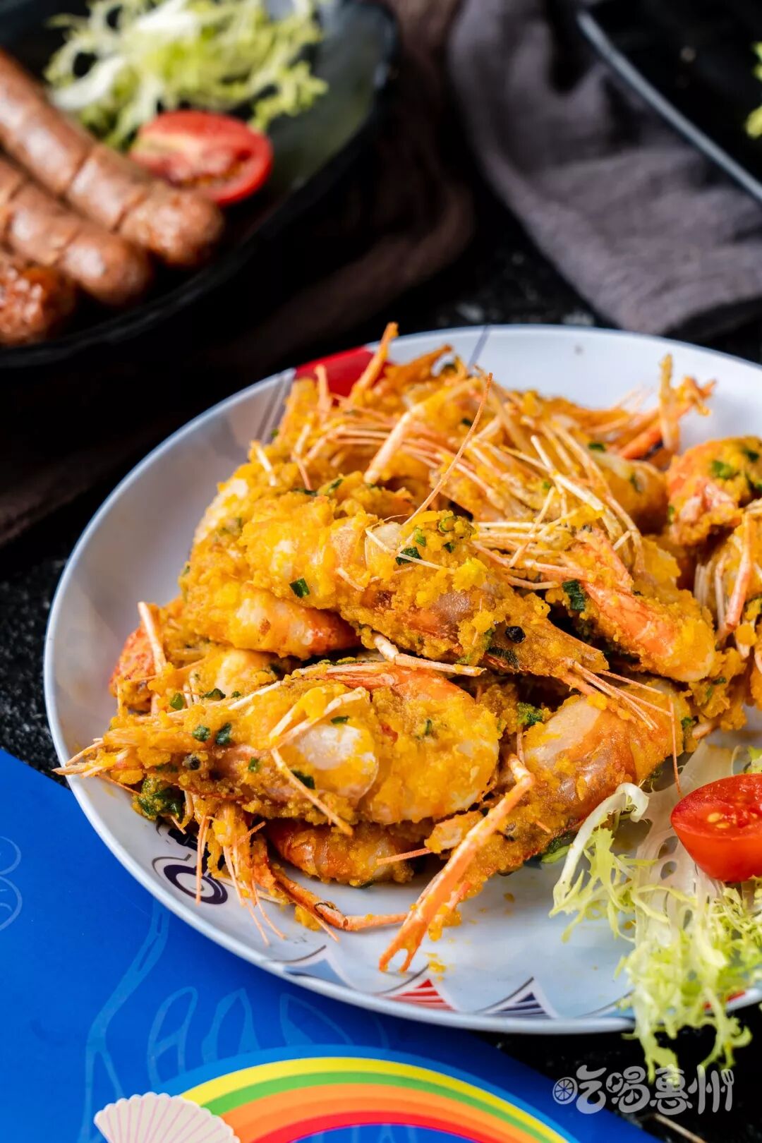 看服务员着咸蛋黄焗大头虾迎面走来,还没到面前我就已经闻到了想喷的咸蛋黄味儿。