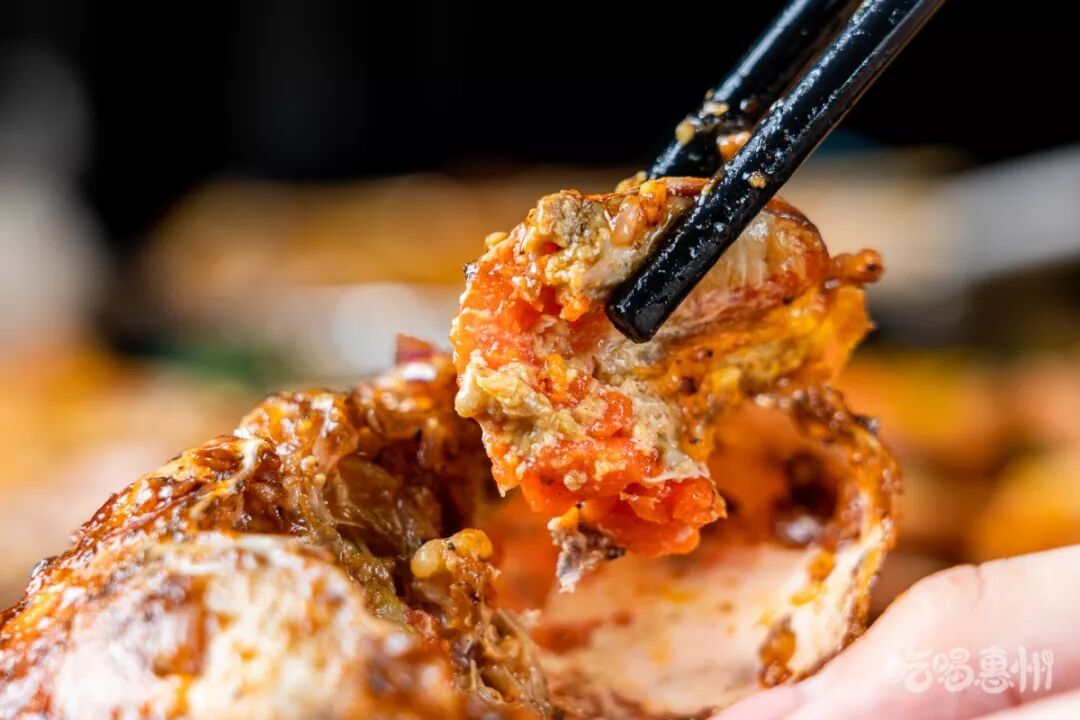随手一夹都是大块的蟹膏,就连蟹壳上都是满满的膏;蟹膏的鲜香夹杂着淡淡的黑胡椒香味,一点也不觉得腻。