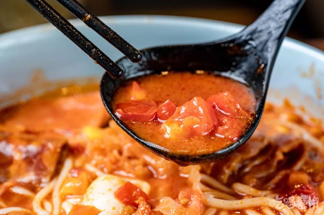 这份番茄作为汤底的米线,跟其他米线的口味大可不同。汤底浑厚有力,浓稠地让人吃起来津津乐道。