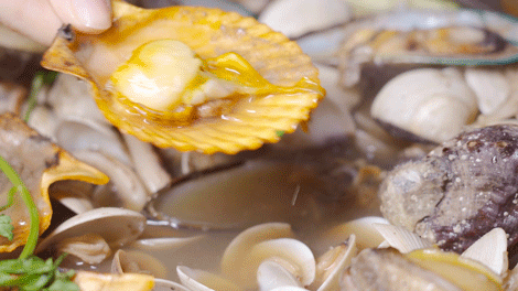 怕吃得太慢,扇贝都是直接上手从锅里抢的,对待美食就是那么地迫不及待。