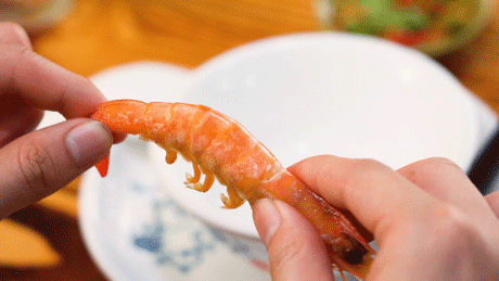 剥虾的速度一定要快,海鲜锅的鲜味,一定要争分夺秒才能充分品尝。