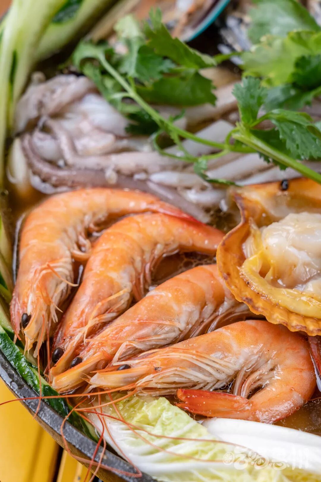 海鲜锅必须有虾仔一席之地!每一个虾仔的Size都很大,排队弓腰蜷缩在锅里的样子,让我瞬间一见钟情。