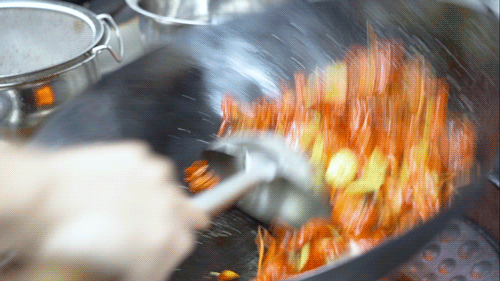 老板说,有专人炒辣椒炒肉,画面这位小哥,只负责辣椒炒肉和生炒小黄牛,有点厉害。