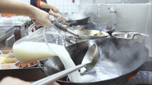 客人下单后,鱼现杀现煎,再倒入已经熬制好几小时的鱼汤,充分融合。